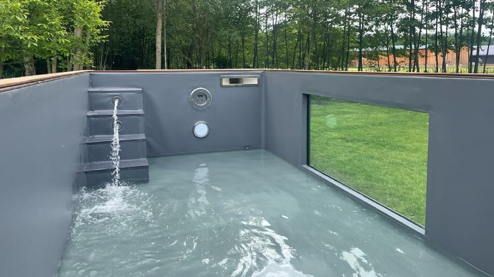 6.2m x 2.5m nyckelfärdig container pool med poolfönster, Premium package