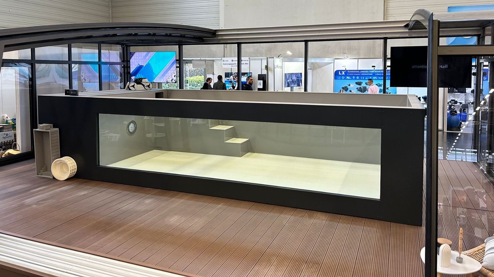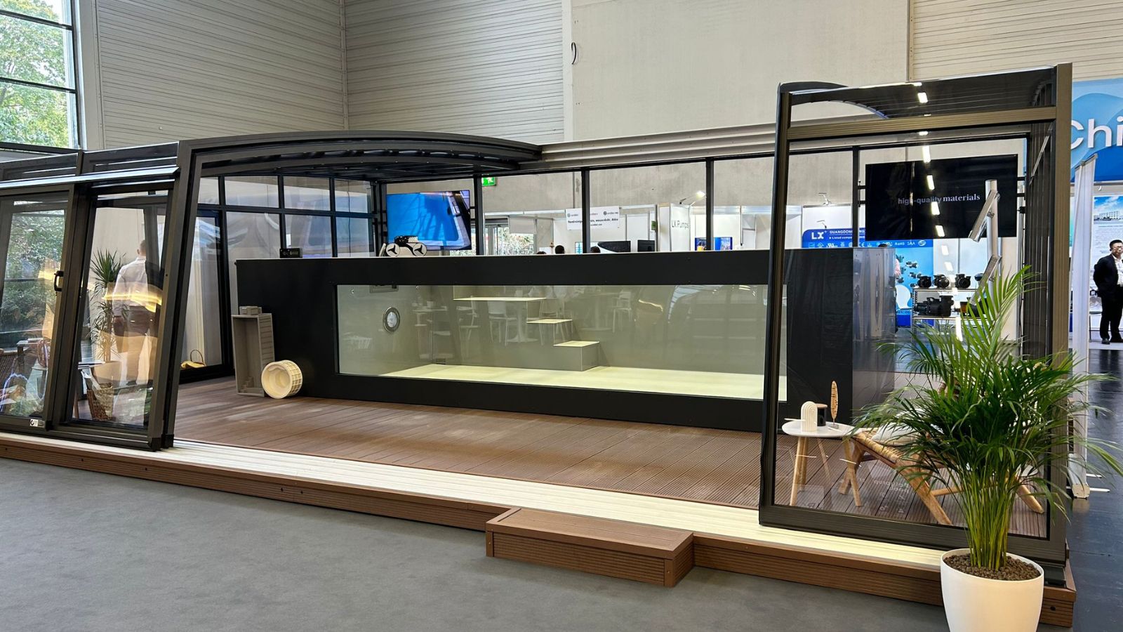 | Tillbehör | Tak, poolfönster, filtreringssystem, värmepump, jet swim, terrass |