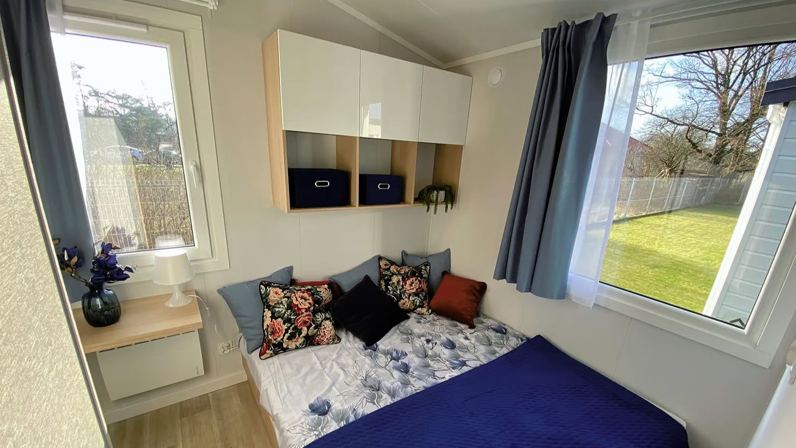 - Väggskåp ovanför sängarna i sovrummen (beroende på modell)