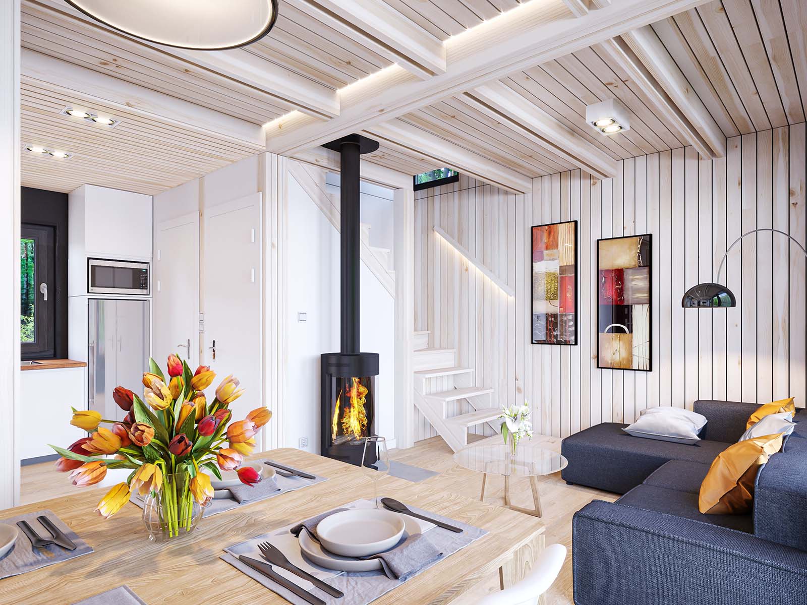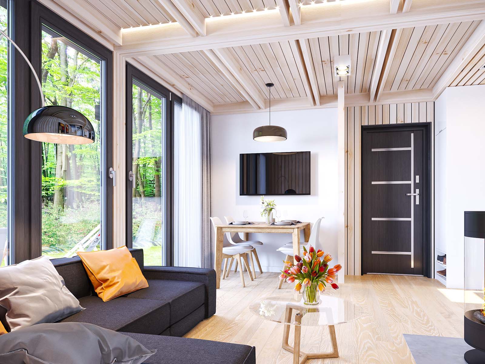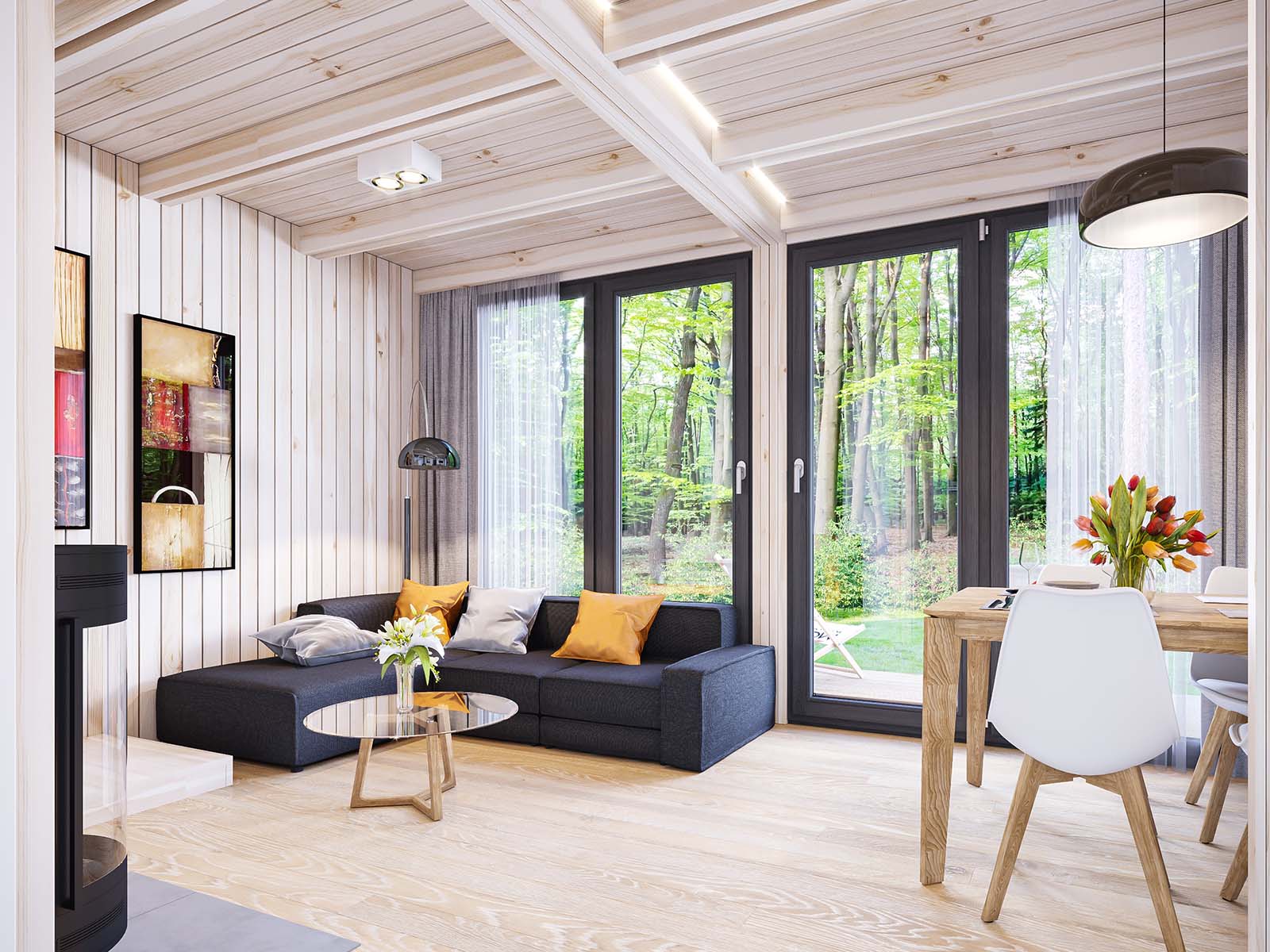 Premium – fullt färdigställd och utrustad med en uppsättning möbler och apparater i hela huset i alla rum. Dessutom har du möjlighet till omfattande anpassning med extra husinredningselement.