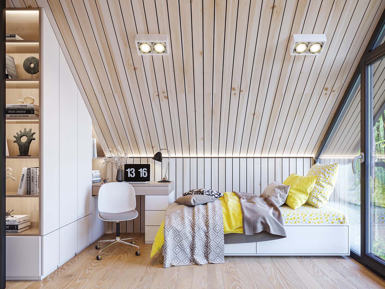 - Väggskåp i sovrum ovanför sängar (beroende på modell)