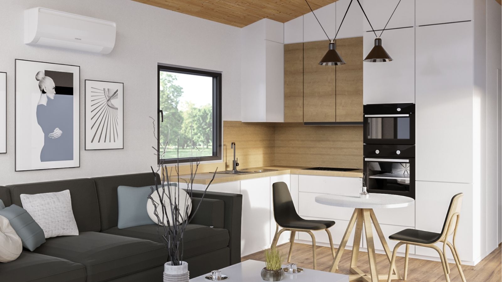 - Uppvärmning/kylning: luft/luftvärmepump, elektrisk golvvärme eller infraröda väggpaneler
