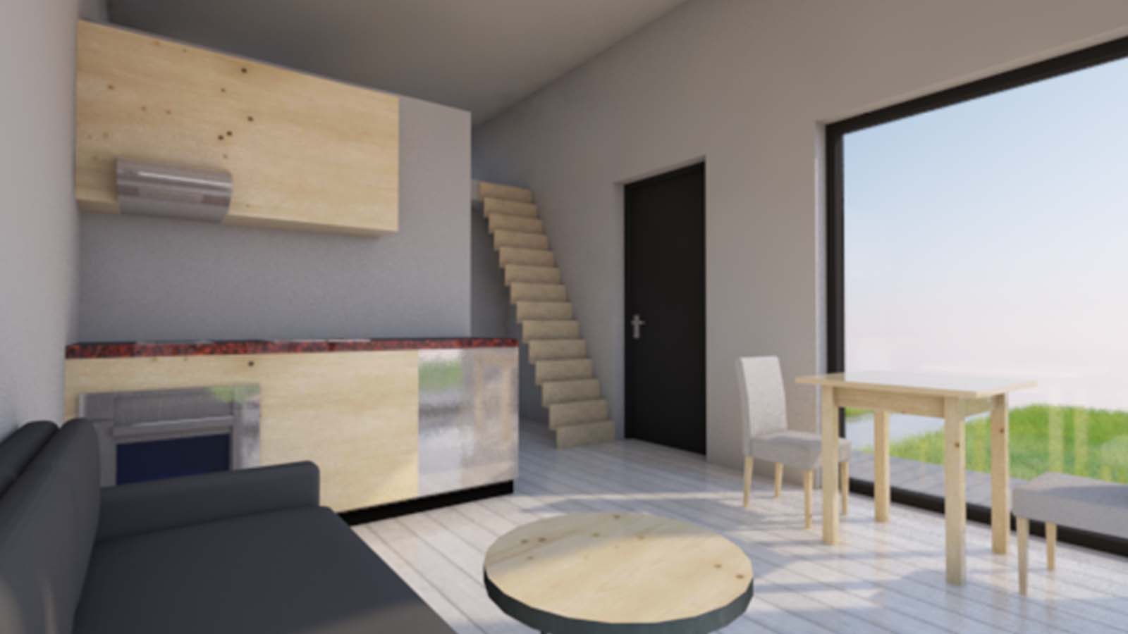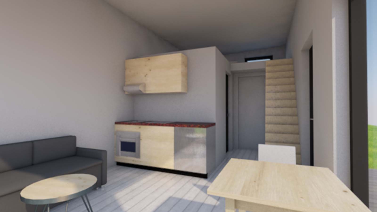 MOMO Cube30 är ett modulärt attefallshus baserat på en stålram. Bottenvåningen har ett rymligt vardagsrum med ett kök, badrum, entréhall och ett sovrum. På mellanvåningen hittar du en liten sovplats eller lite extra förvaring.