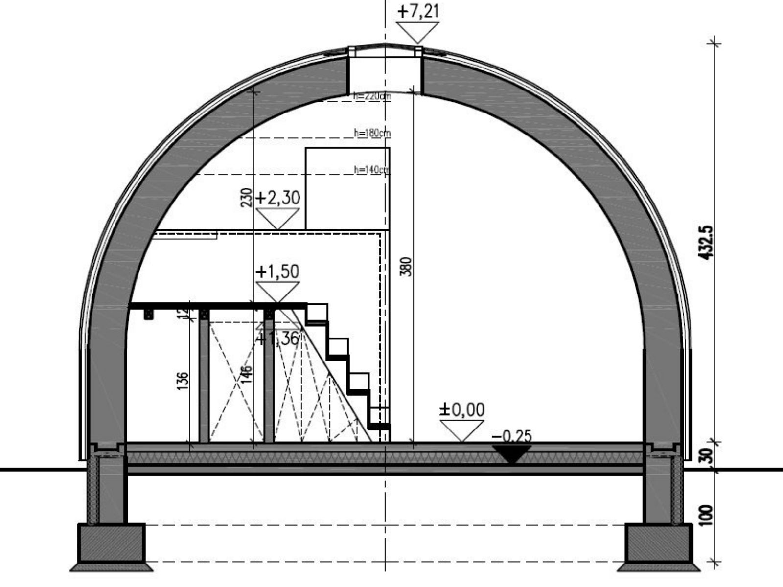 Självmonterande kupolhus med en yta på 35 m², standard med öppet skal.