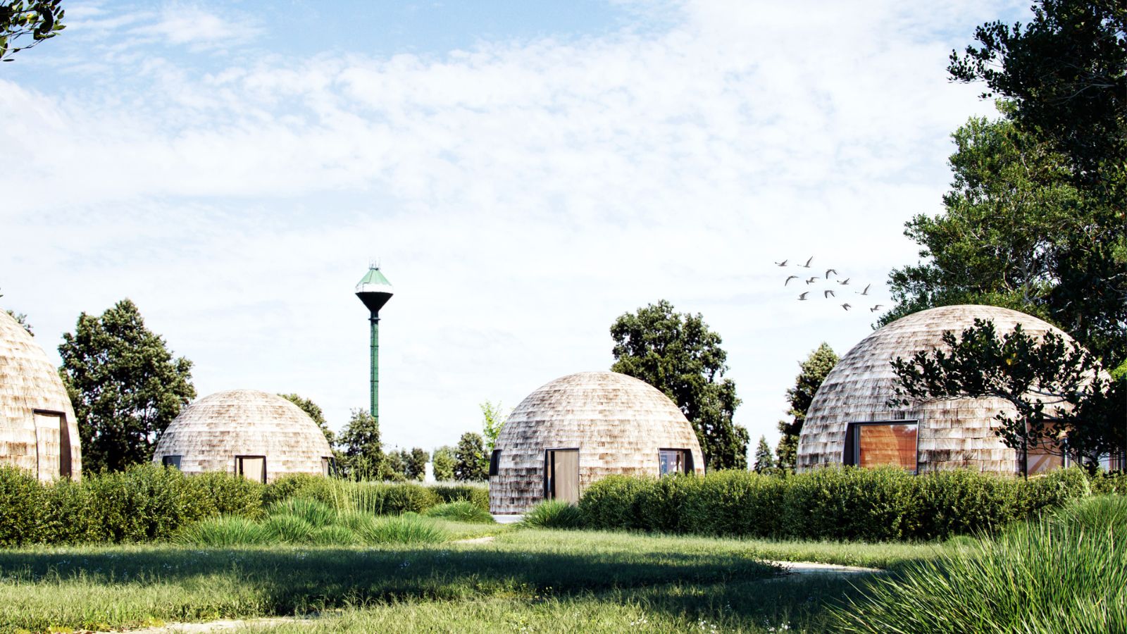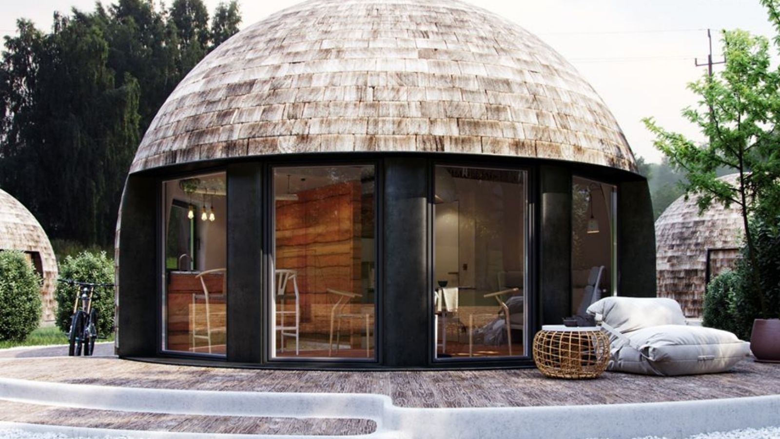 Modulkupolen består av moduler med en KVH-torkad träram fylld med hampabetong.