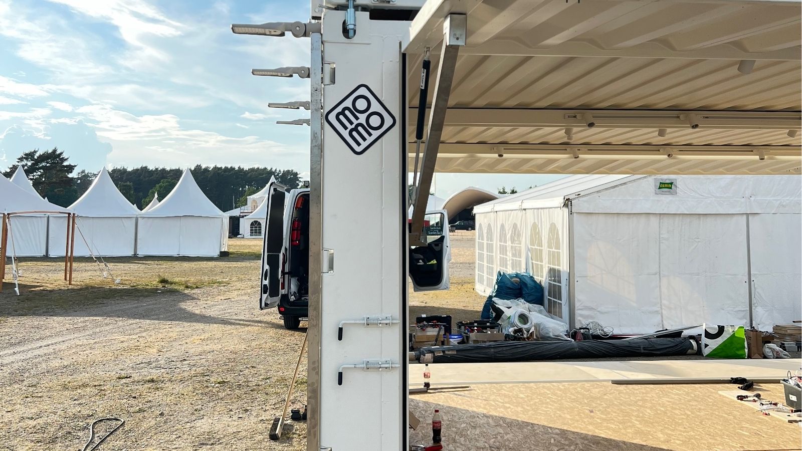 MOMO Event 2x20DV innehar två 20-fots containrar med en terrass och är idealisk för mässor, festivaler och andra evenemang. Den erbjuder flexibla konfigurationer för att möta olika behov. Interiören är vitmålad med halkfritt golv. Strukturen stödjer installation av upplysta skyltar eller TV-apparater både inomhus och utomhus och har ett komplett belysningssystem. Takterrassen erbjuder en lugn miljö och kan rymma upp till 15 personer. Trapporna, som är 120 cm breda, uppfyller alla säkerhetsstandarder.