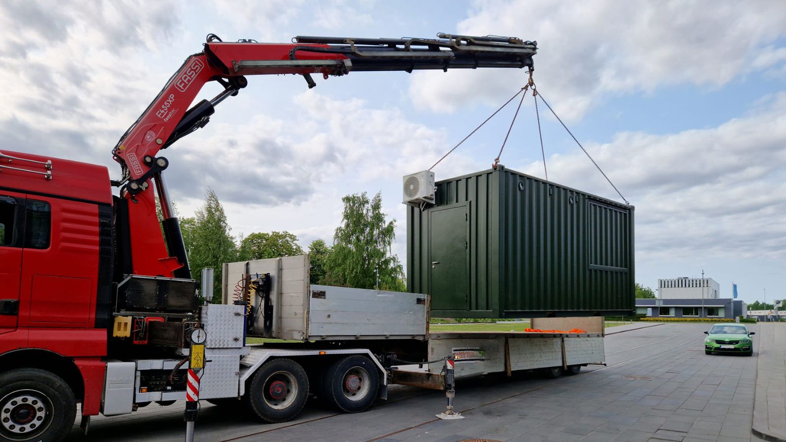 - Kran för att lyfta byggnaden från en lastbil