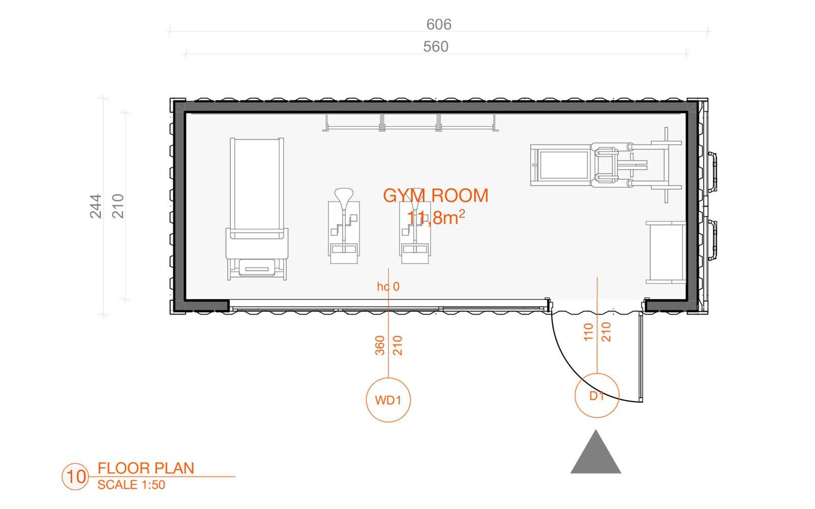 Den är byggd av en 20 feet lång HC fraktcontainer. Tack vare det kan vi behålla det industriella utseendet. Från utsidan, en stilren liten byggnad målad i den färg du väljer.