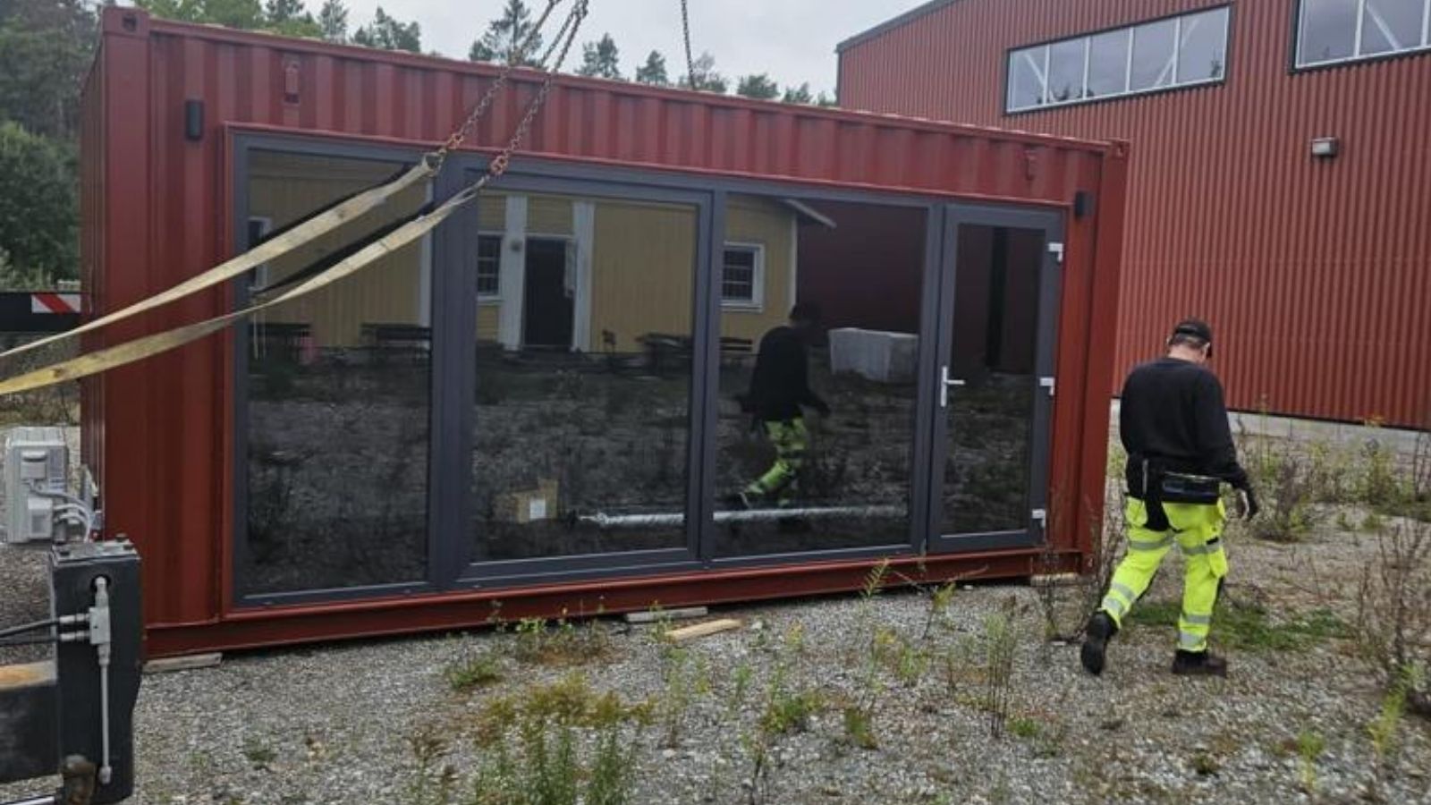 - Kran för att lyfta byggnaden från en lastbil