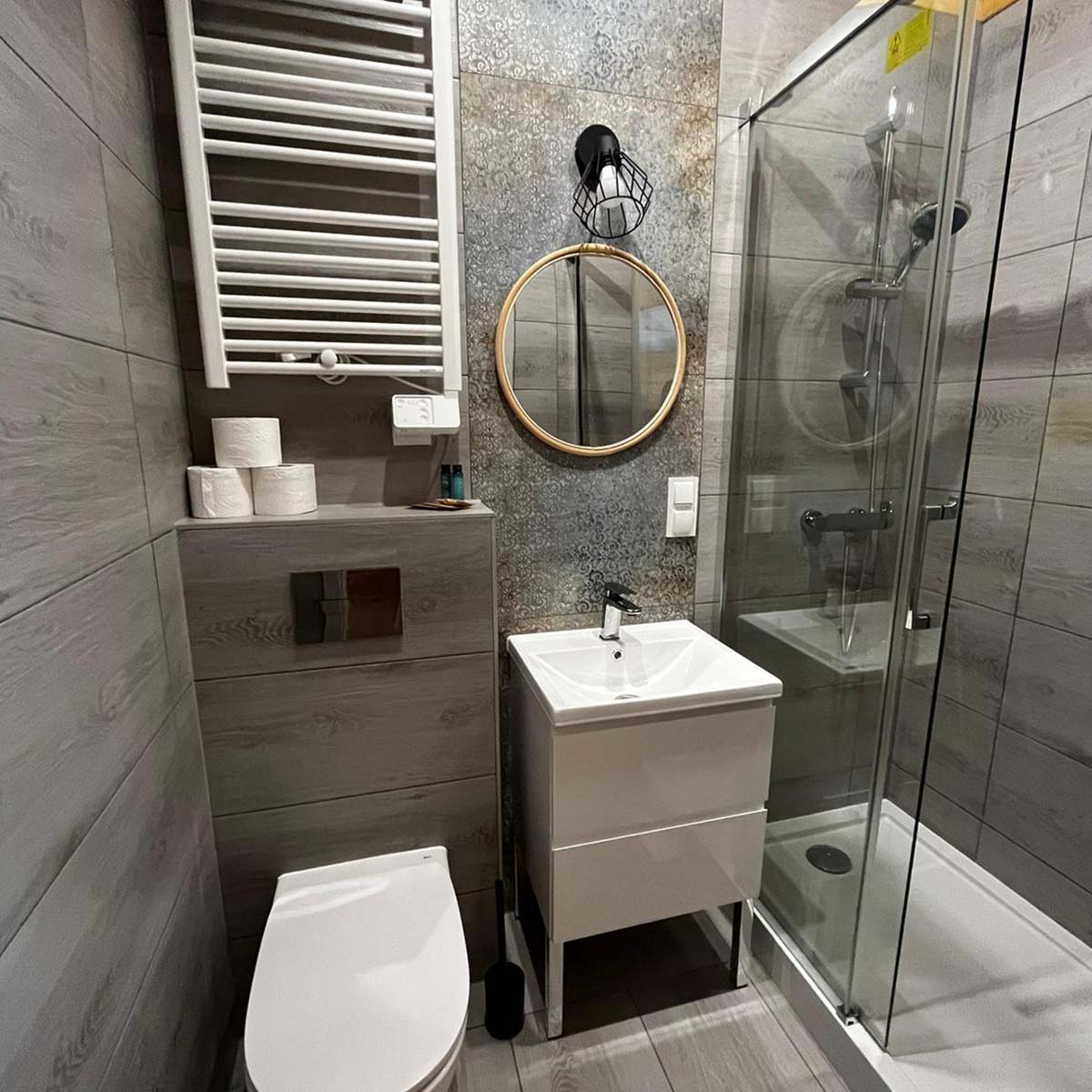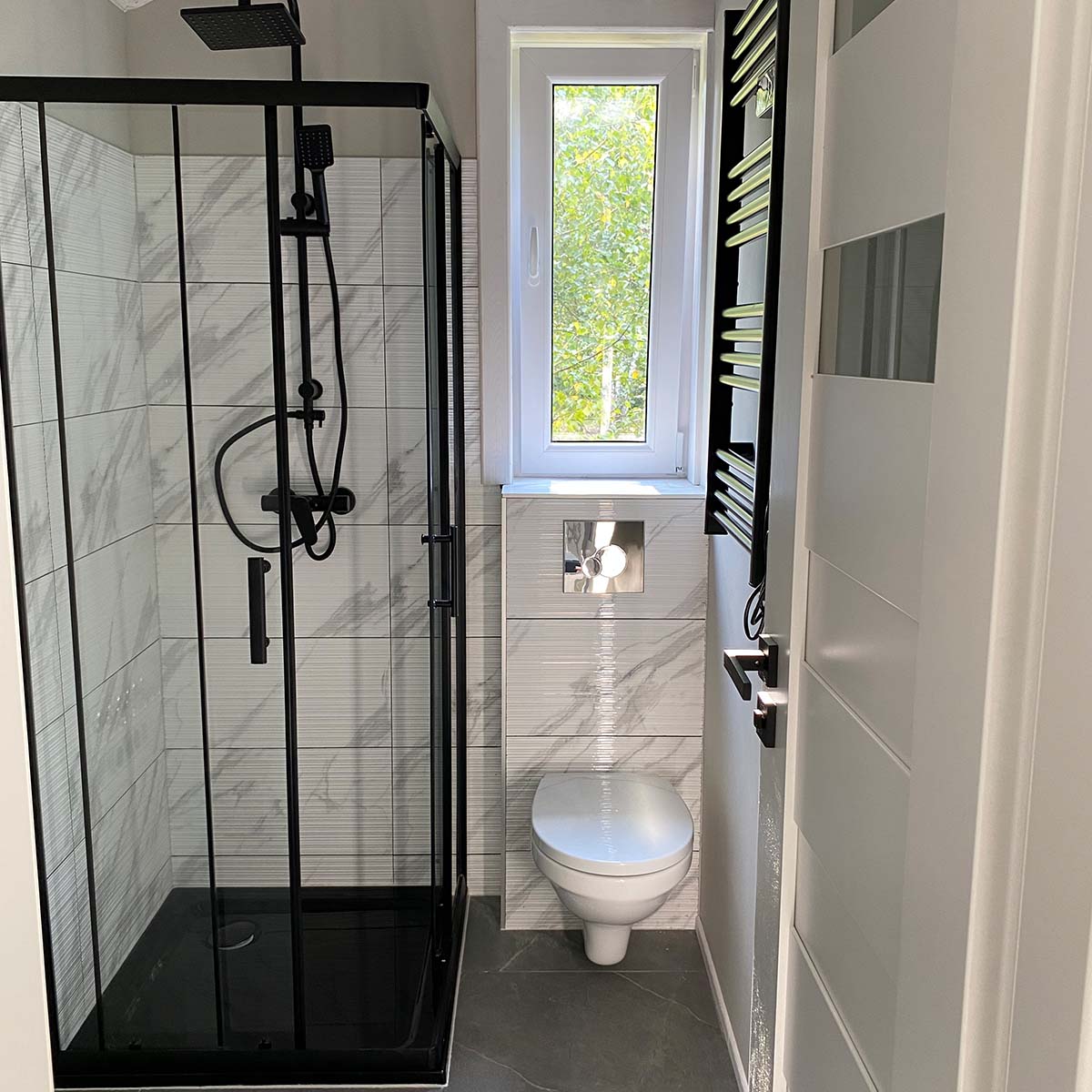 - Badrum: Kompakt toalettstol, duschbricka och beslag