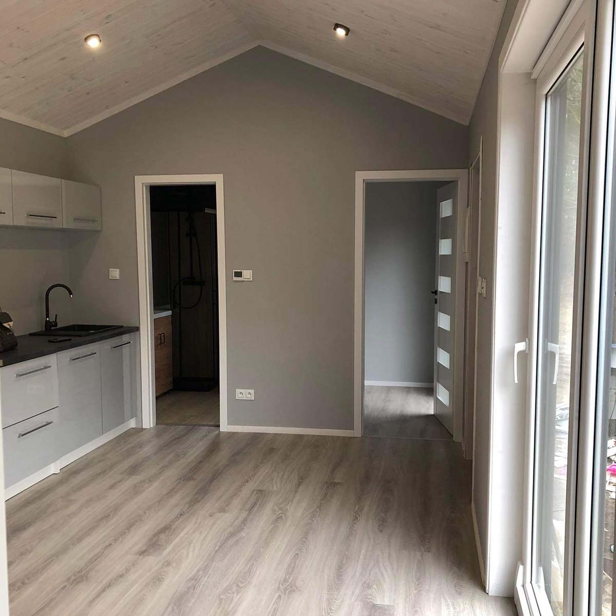 MOMO Ricky 2 är ett smart och kompakt hus med gaveltak, perfekt för ett par eller en liten familj. Huset har en total boyta på 29 kvadratmeter, men det är effektivt utformat för att maximera utrymmet.