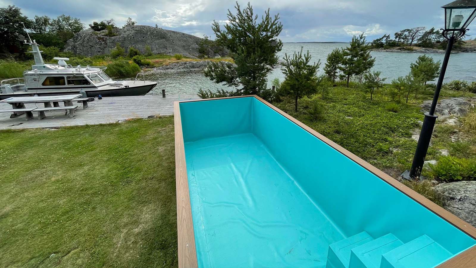 CubePool i en 6 meter lång version och i ett Sport&Spa-paket levererades till en privat kund i Nynäshamn, Sverige. Den är placerad på kusten med en fantastisk utsikt.